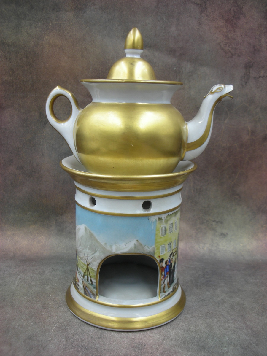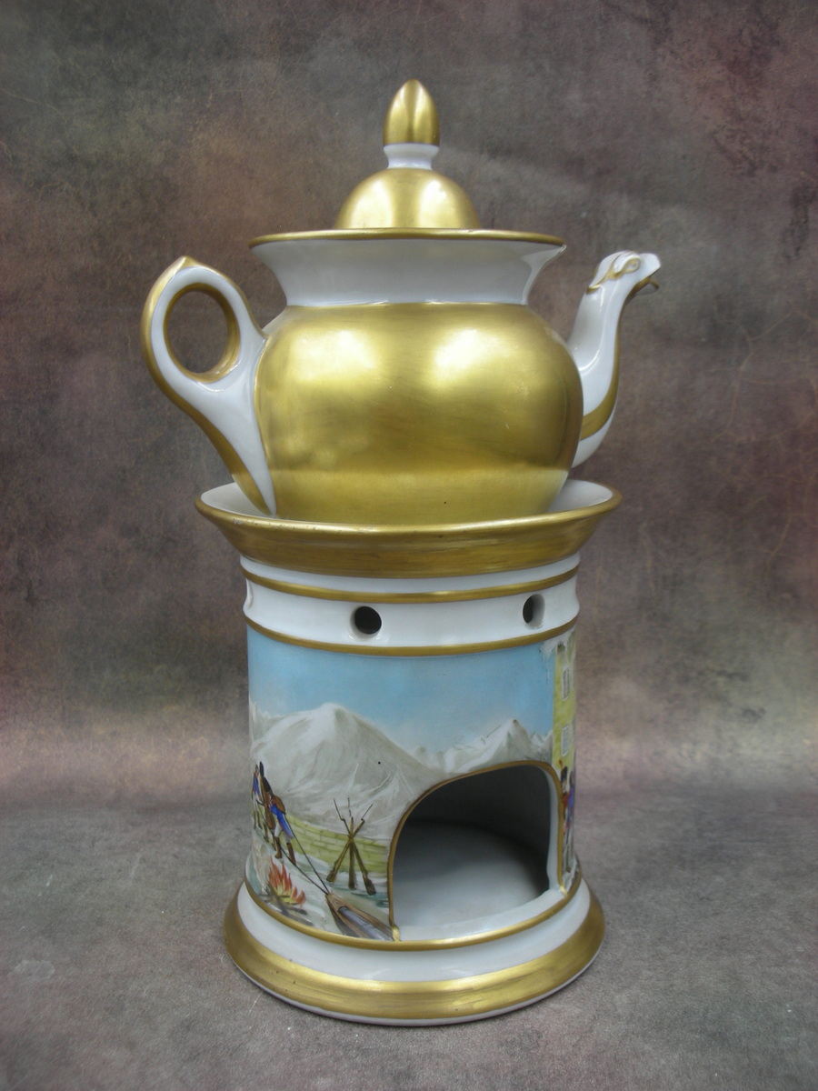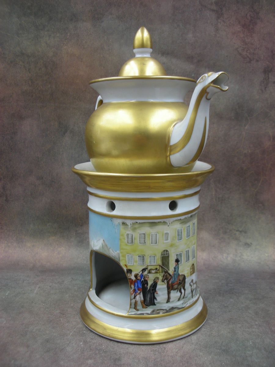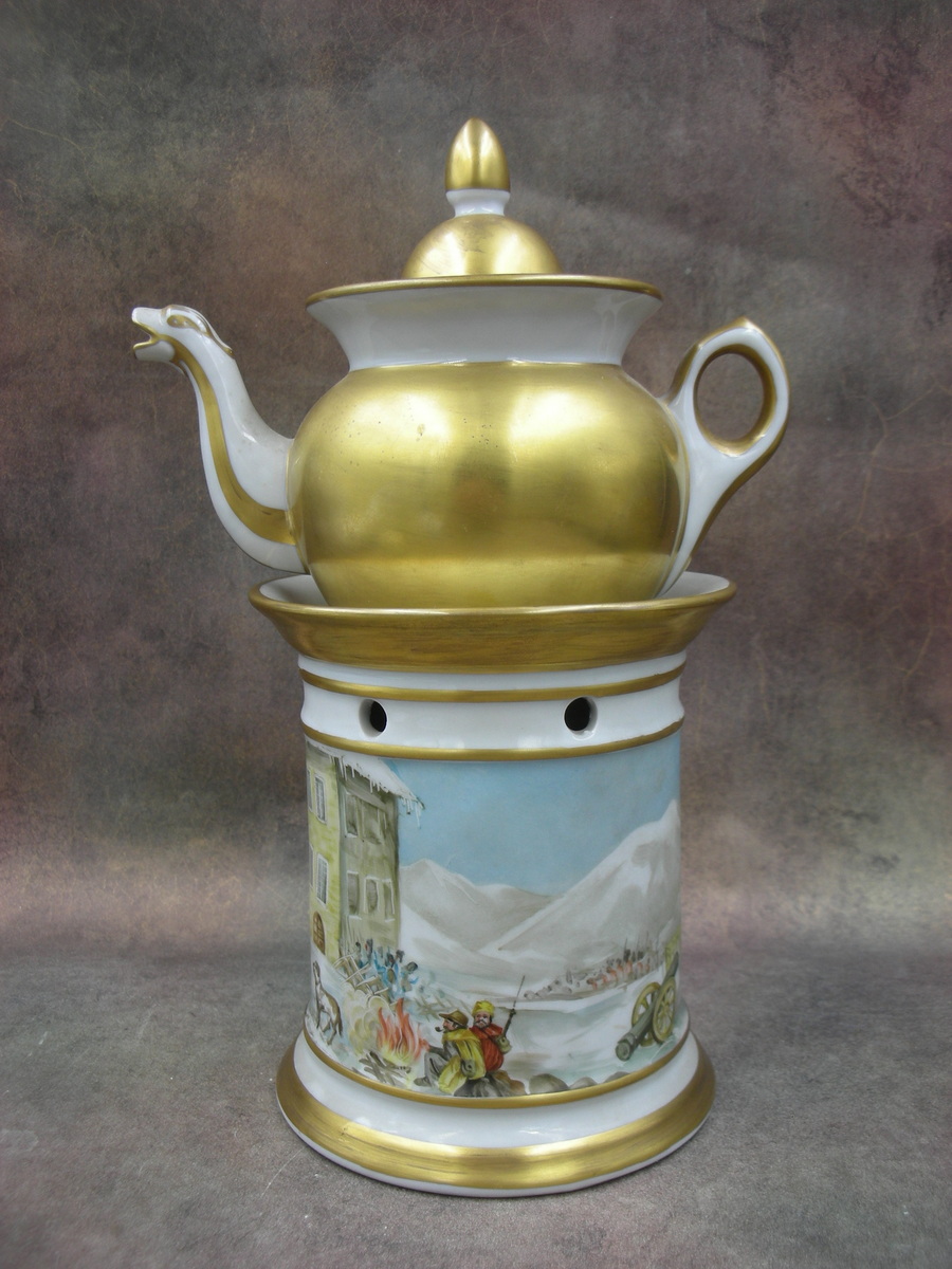 Фарфор «Чайник заварной с батальной сценой», живопись, без марки, Высота 25 см., диаметр основания 11,5 см.