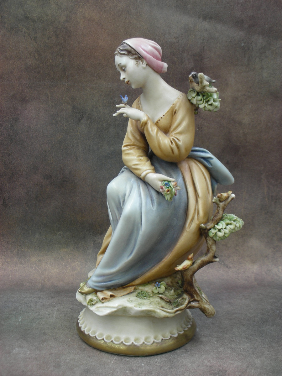 Фарфоровая статуэтка «Девушка с бабочкой», Италия (Capodimonte), фабрика Антонио Борсато (Antonio Borsato), Высота 22 см.