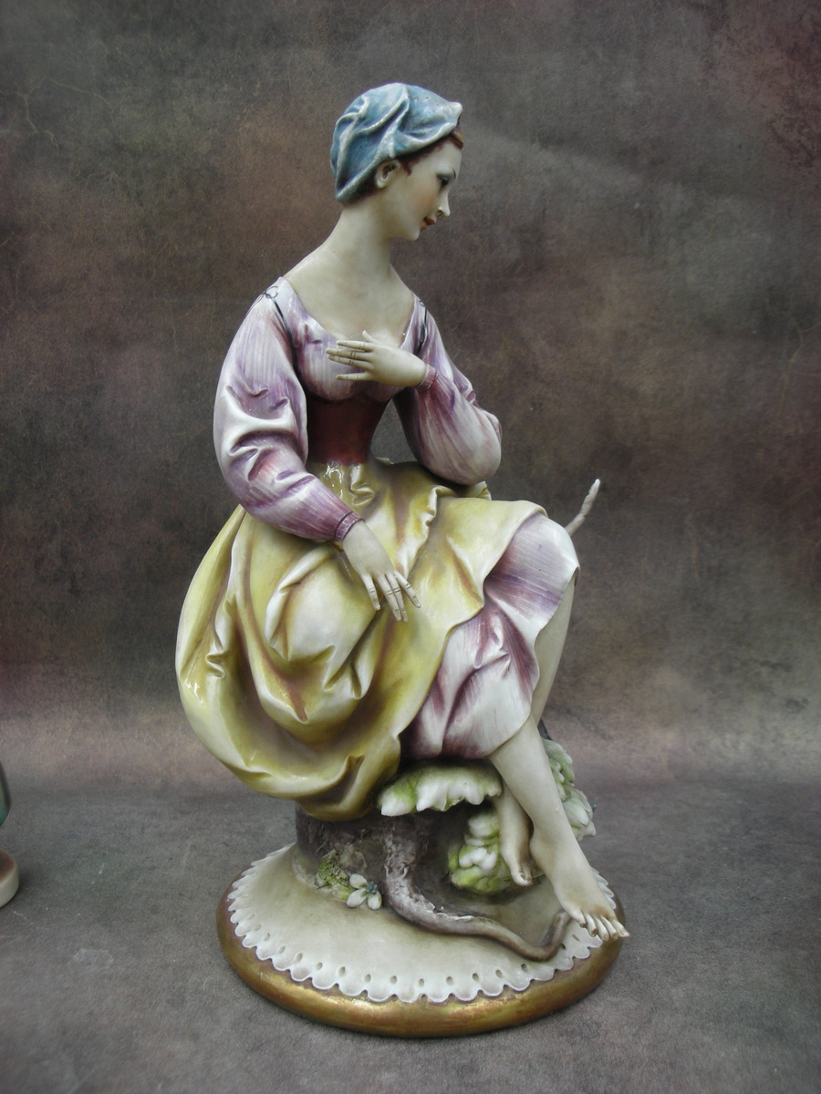 Фарфоровая статуэтка «Девушка с фазаном», Италия (Capodimonte), фабрика Антонио Борсато (Antonio Borsato), Высота 24 см.