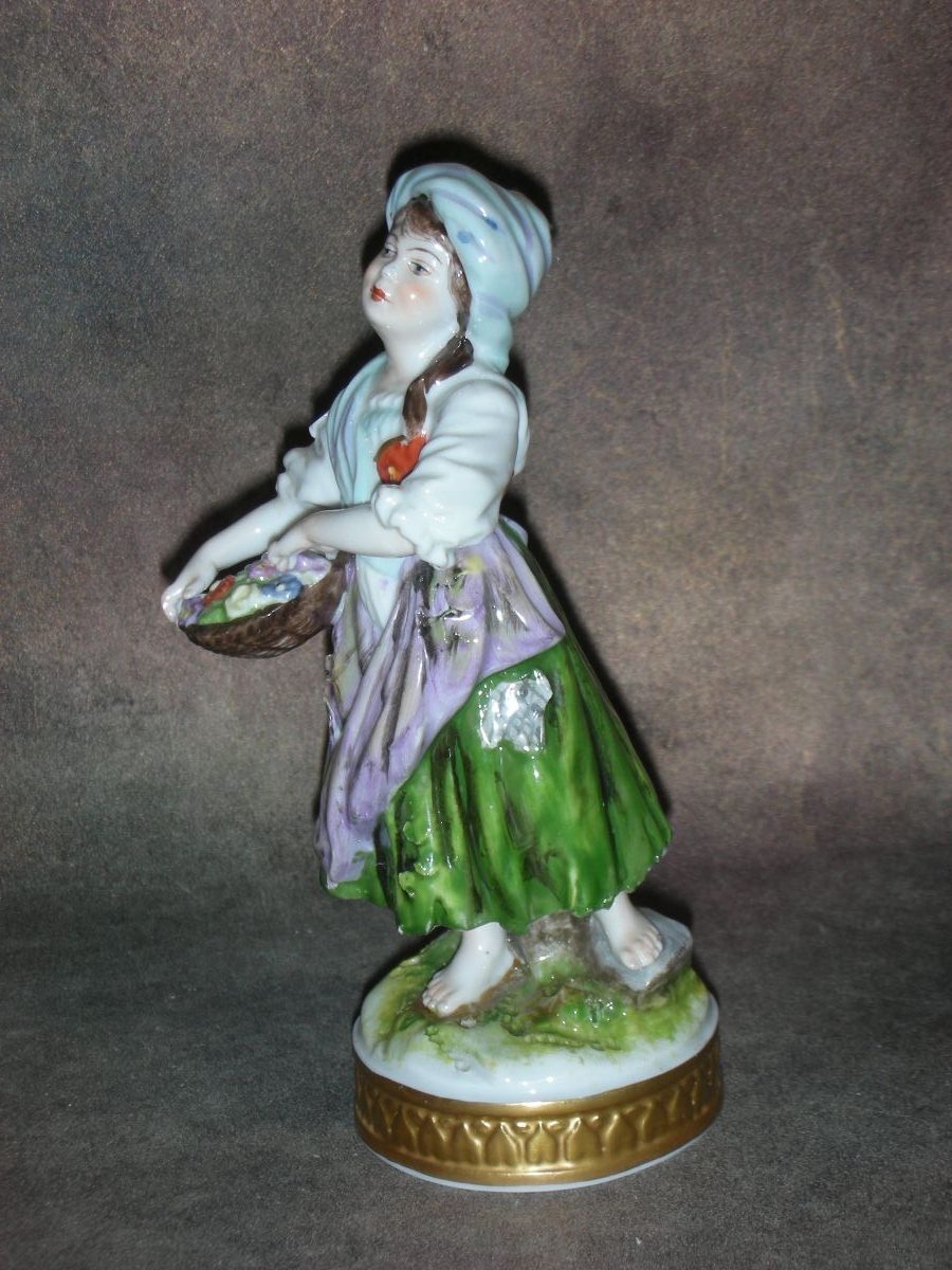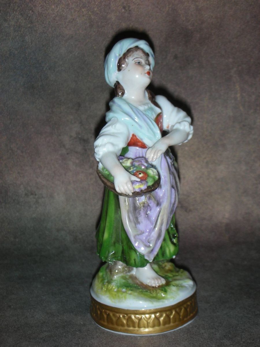 Фарфоровая статуэтка «Девушка с корзиной цветов», Германия (Volkstedt), Высота 14 см.
