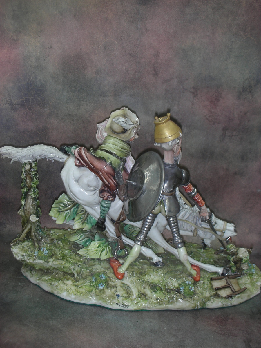 Фарфоровая статуэтка «Дон Кихот и Санчо Панса», Италия (Capodimonte), Скульптура итальянского художника Тициано Галли, Высота 28 см., длина 40 см., ширина 20 см.