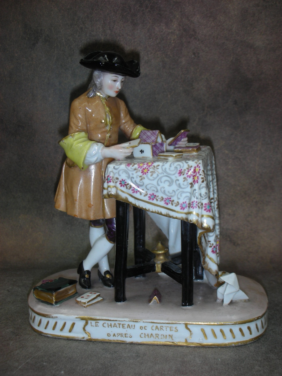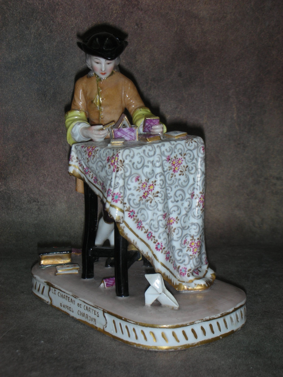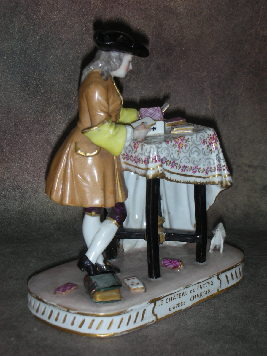 Фарфоровая статуэтка «Карточный домик», по картине Ж.-Б. С. Шардена, Франция (Парижская фарфоровая мануфактура), конец 19 начало 20 века. Высота 14,5 см.