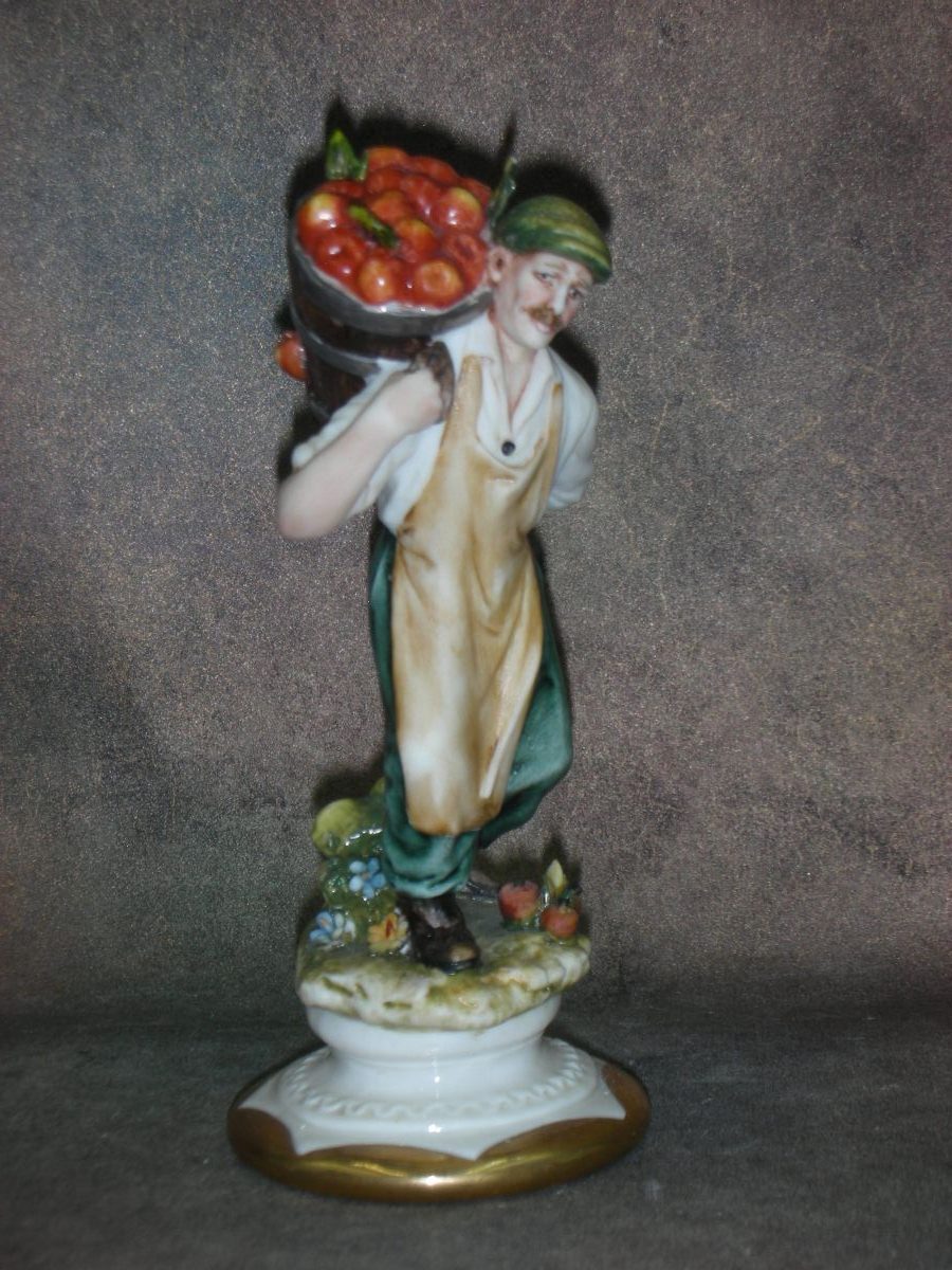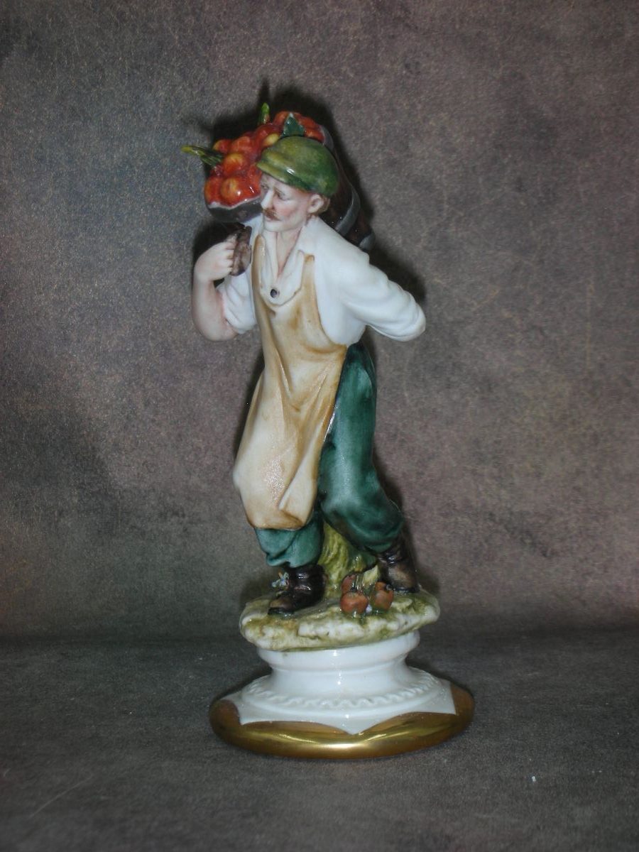 Фарфоровая статуэтка «Мужчина с корзиной яблок», Италия, Capodimonte, Высота 13 см.