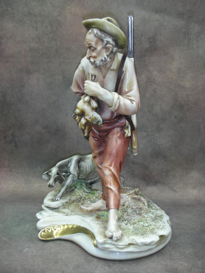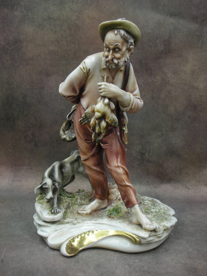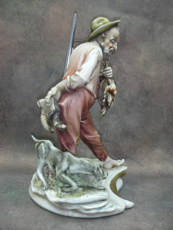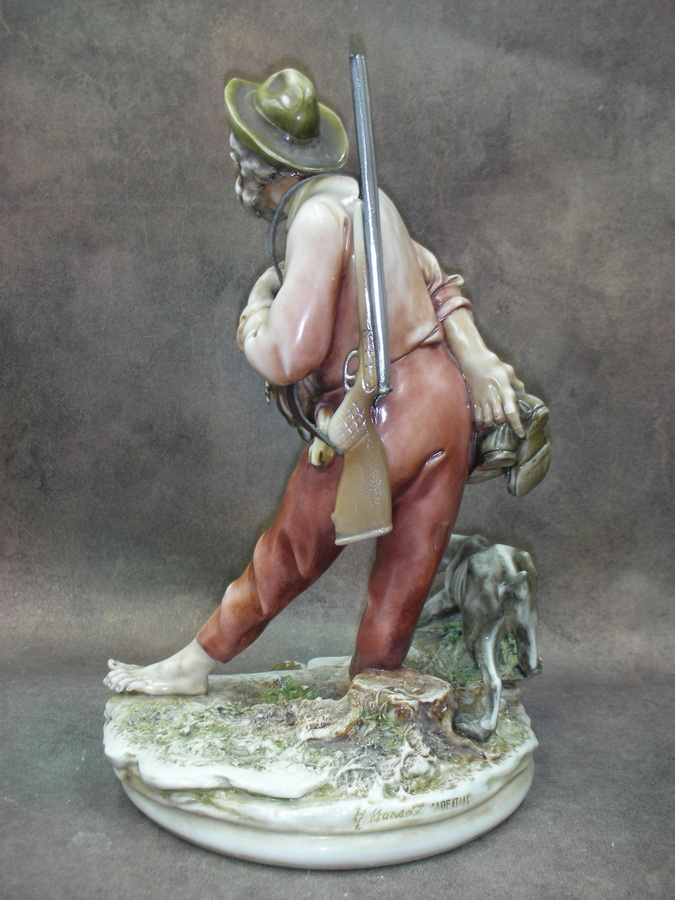 Фарфоровая статуэтка «Охотник», Италия, Capodimonte (фабрика Антонио Борсато (Antonio Borsato)), Высота 23 см.