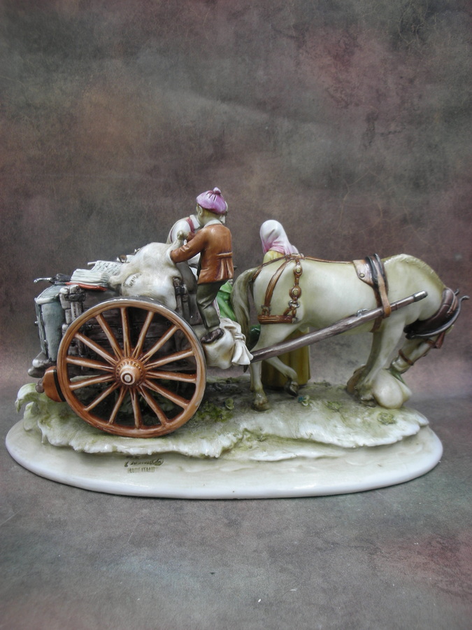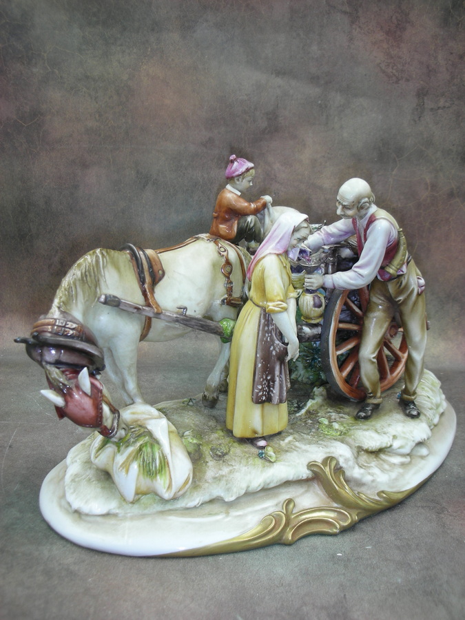 Фарфоровая статуэтка «Продавец вина», Италия (Capodimonte), фабрика Антонио Борсато (Antonio Borsato), Высота 18 см., основание 30м. на 18 см.