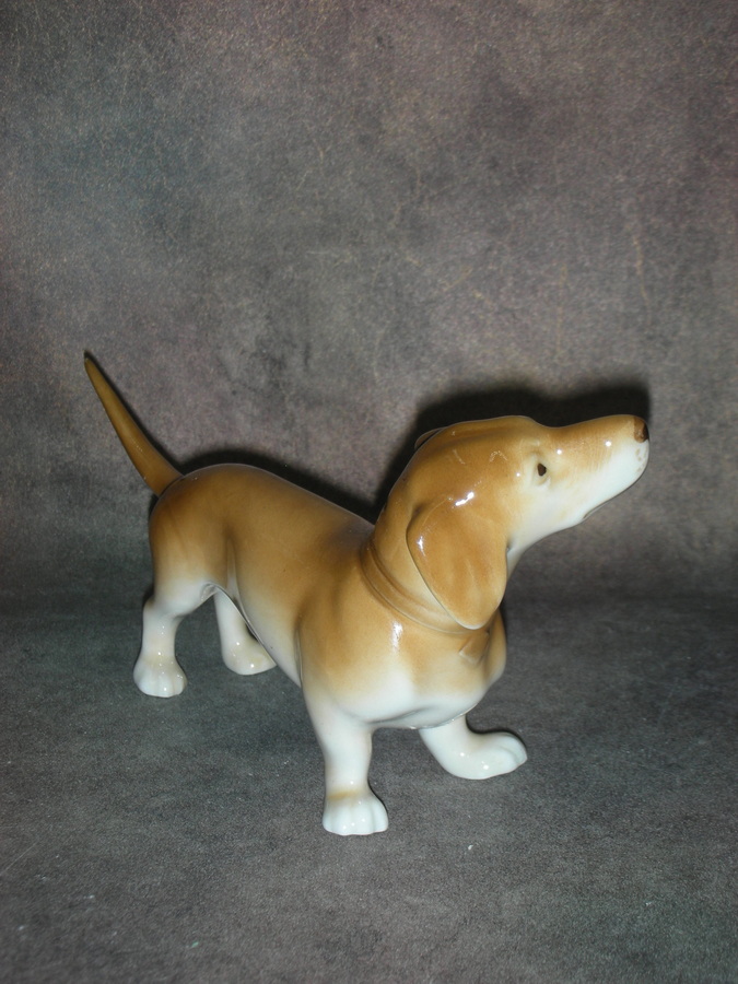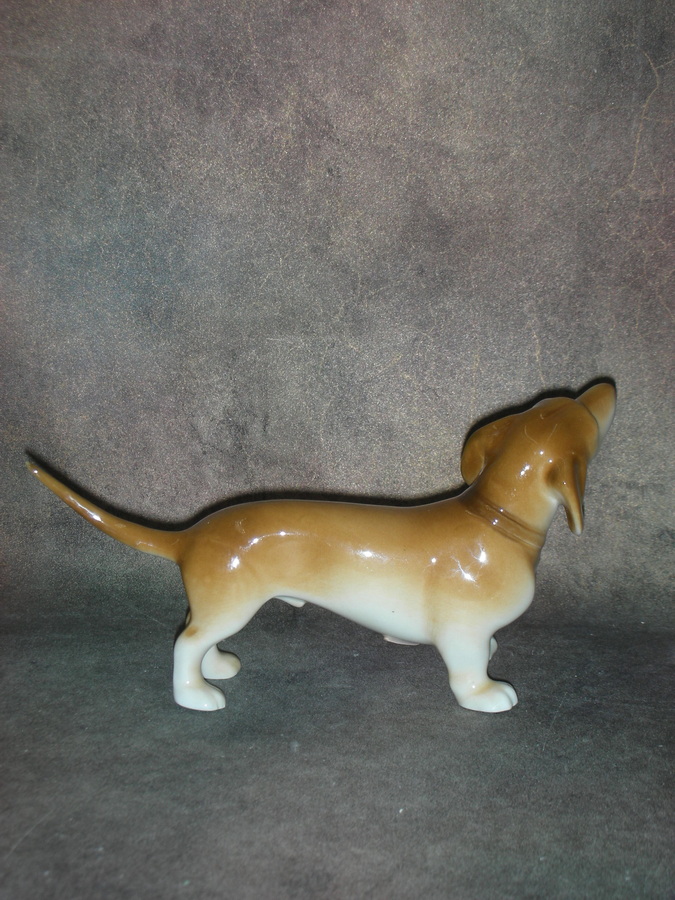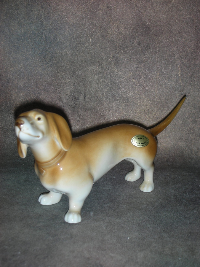 Фарфоровая статуэтка «Собака Такса», Чехословакия (Royal DUX), Высота 9 см., длина 16 см.