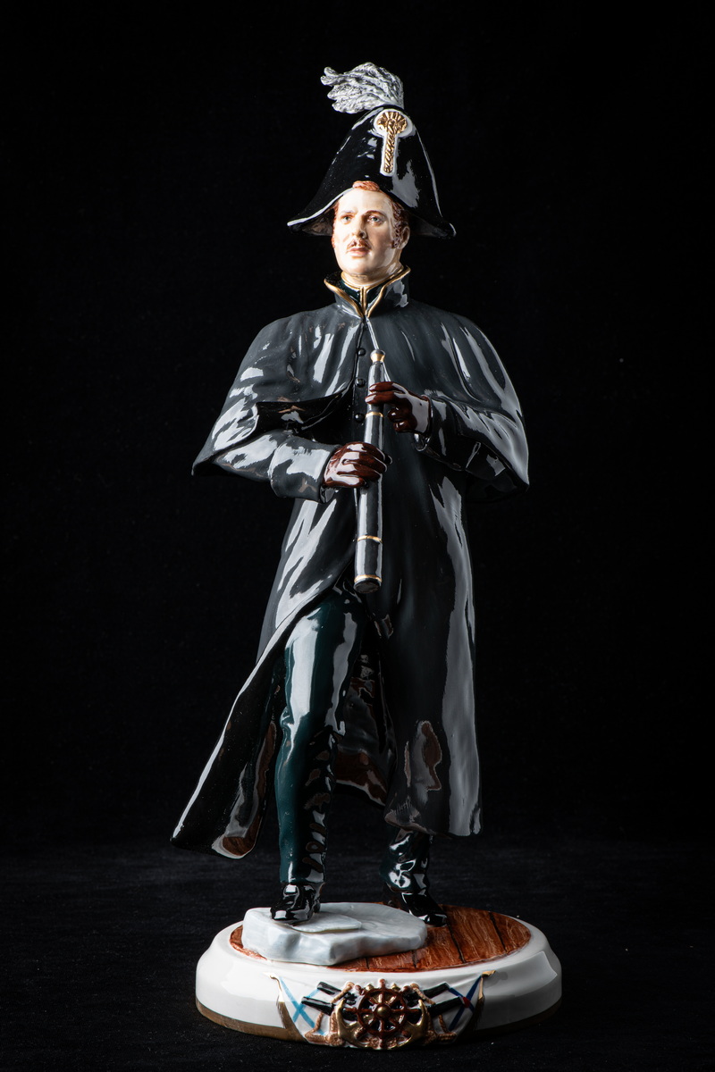 Фарфоровая статуэтка «Беллинсгаузен Фаддей Фаддеевич - Русский флотоводец», частная фарфоровая мануфактура, Россия. Лимитированный тираж 100 штук. Высота 32 см.