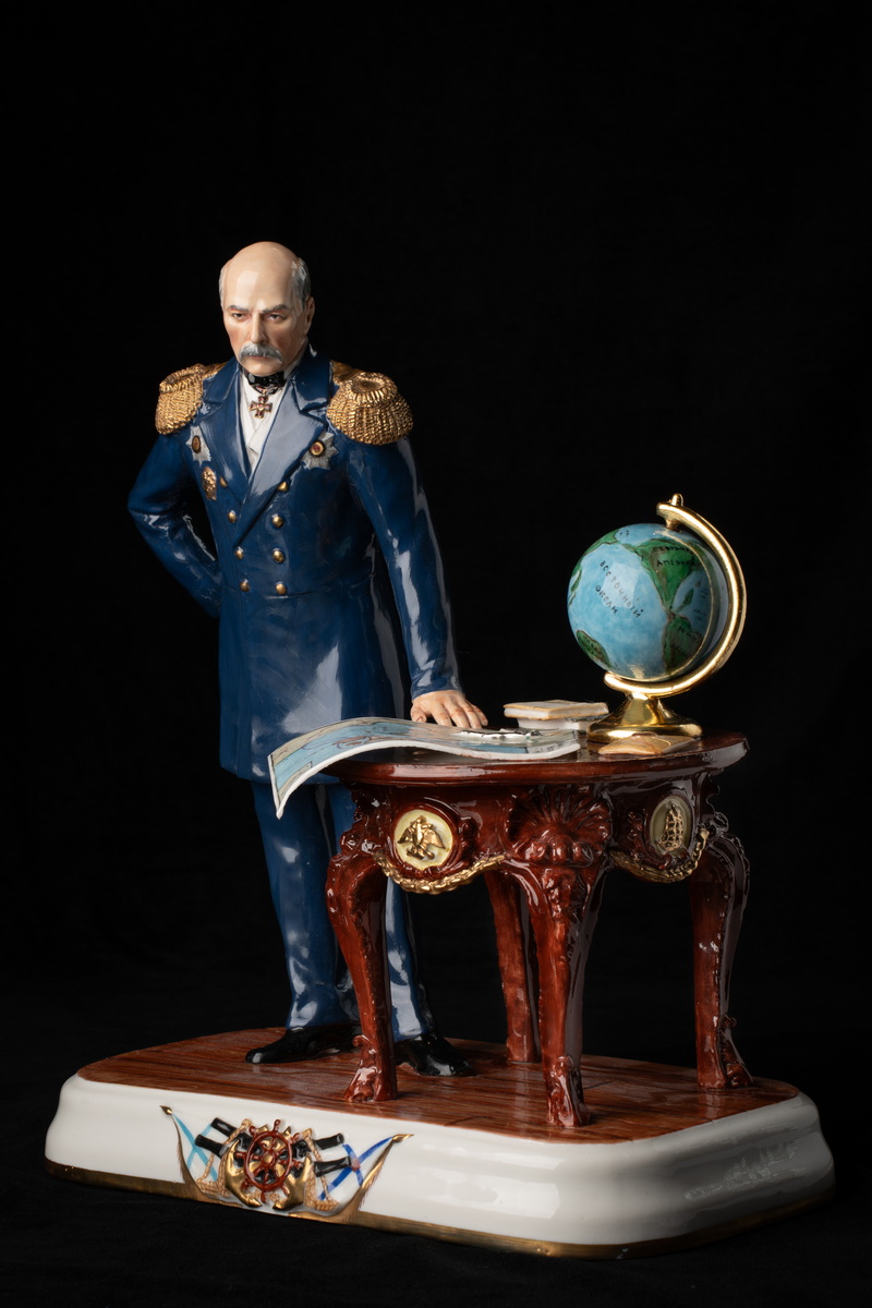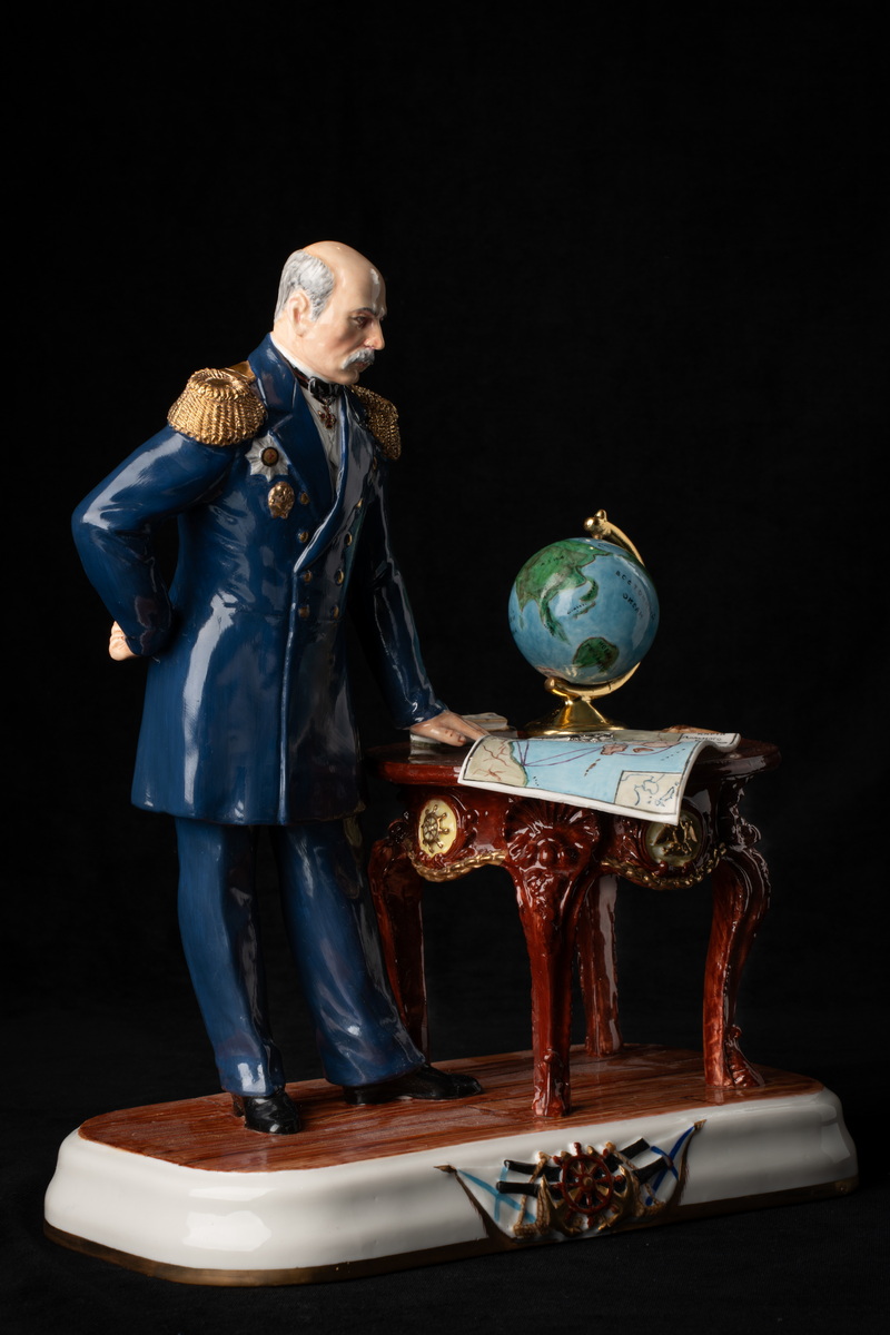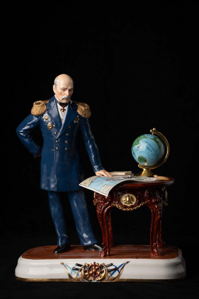 Фарфоровая статуэтка «Невельской Геннадий Иванович - Русский флотоводец», частная фарфоровая мануфактура, Россия. Лимитированный тираж 100 штук. Высота 32 см.