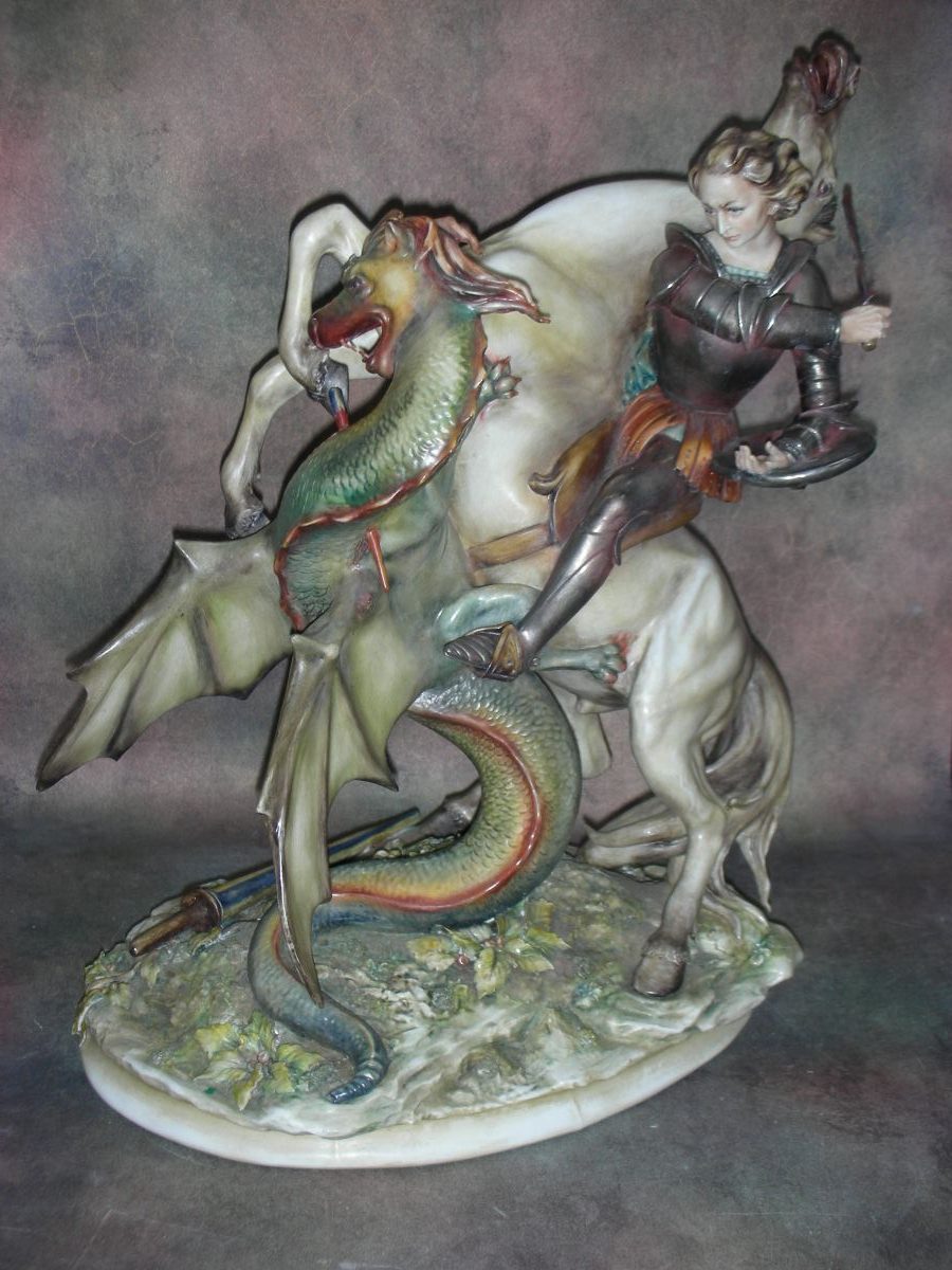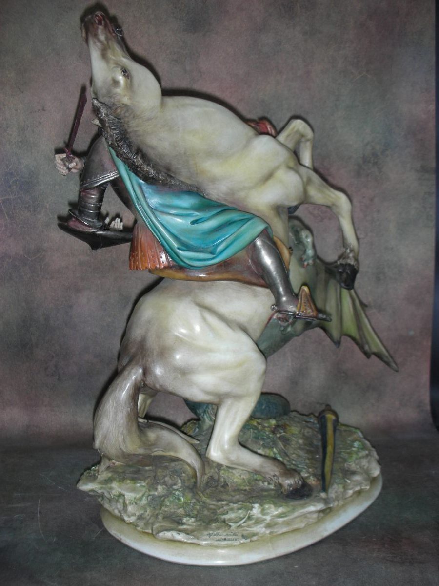 Фарфоровая статуэтка «Святой Георгий», Италия, Capodimonte (фабрика Антонио Борсато (Antonio Borsato)), Высота 40 см, основание 22 см. на 30 см.